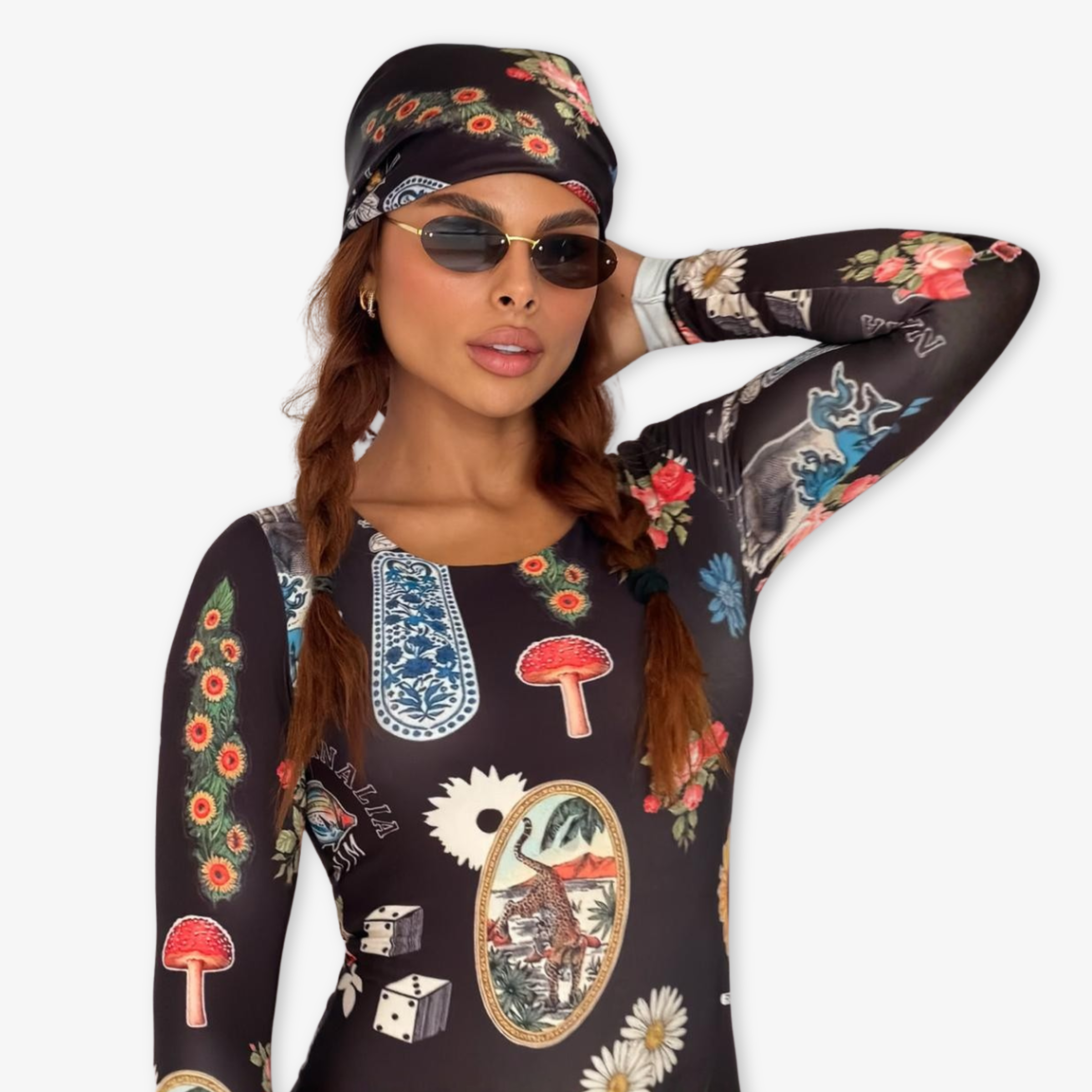 BODY MANGA LARGA CON SUBLIMADO LOCALIZADO Y PAÑOLETA CON DISEÑO PERSONALIZADO