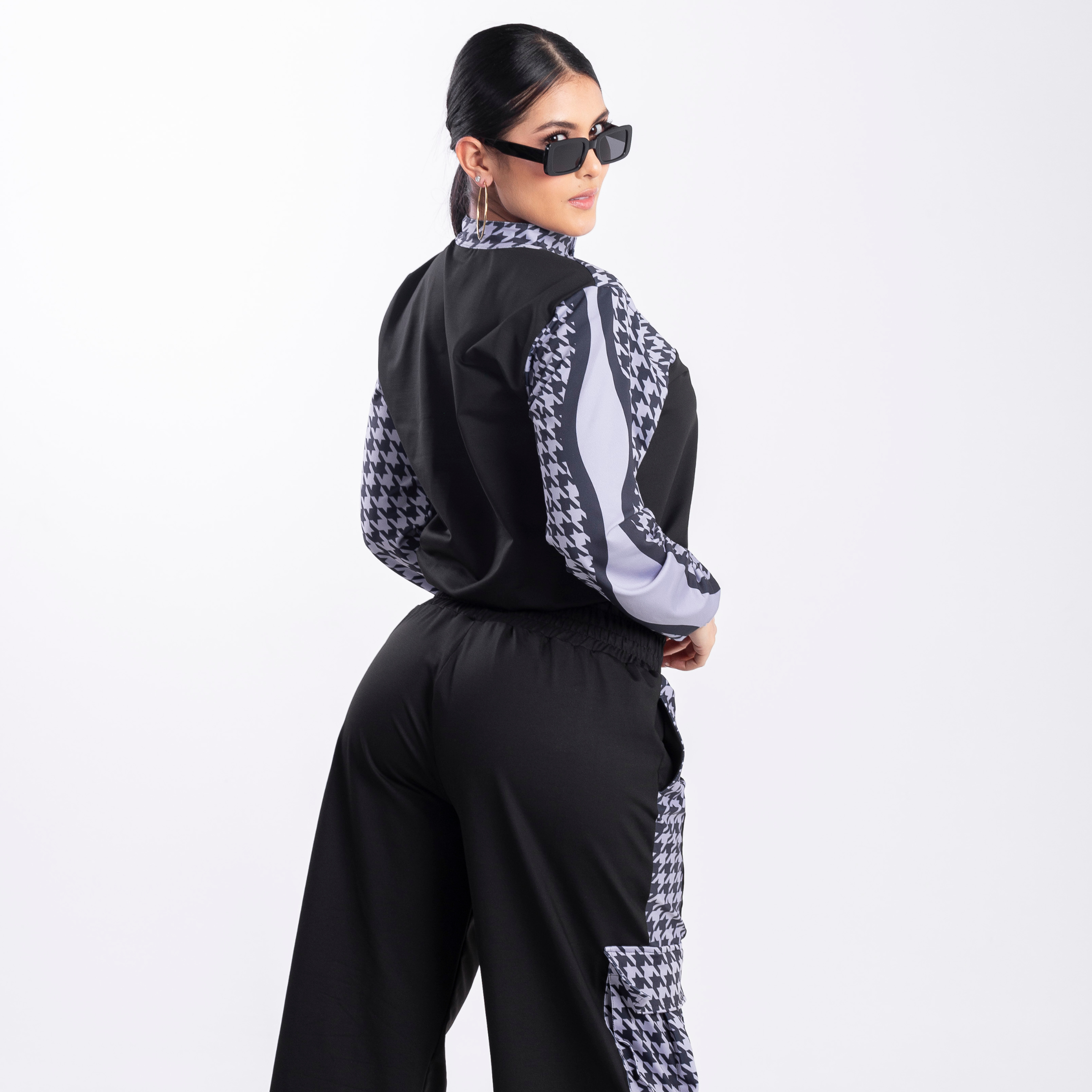 Camibuso estampado con elástico en parte inferior y pantalón cargo.