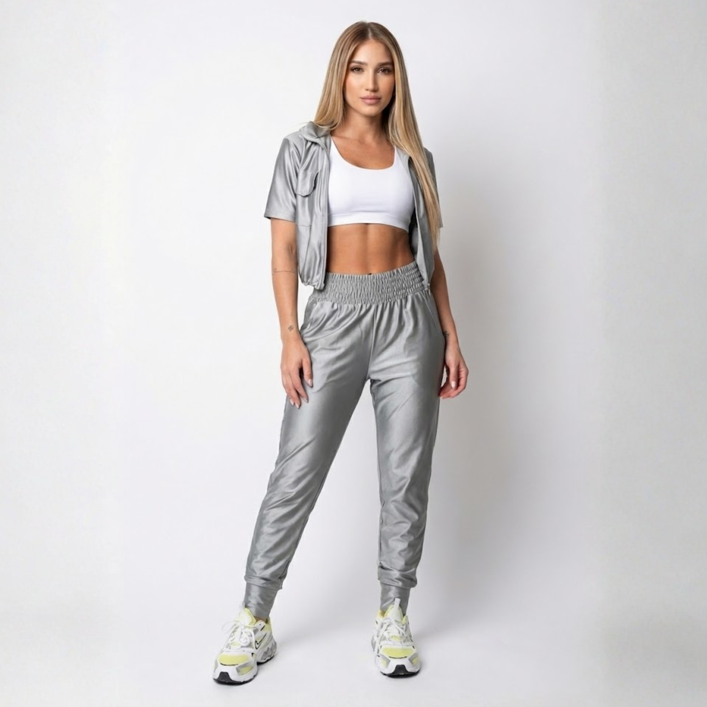 La blusa cuenta con un diseño moderno y práctico, con cierre delantero y bolsillo. El jogger con pretina enresortada, garantizando un ajuste cómodo.