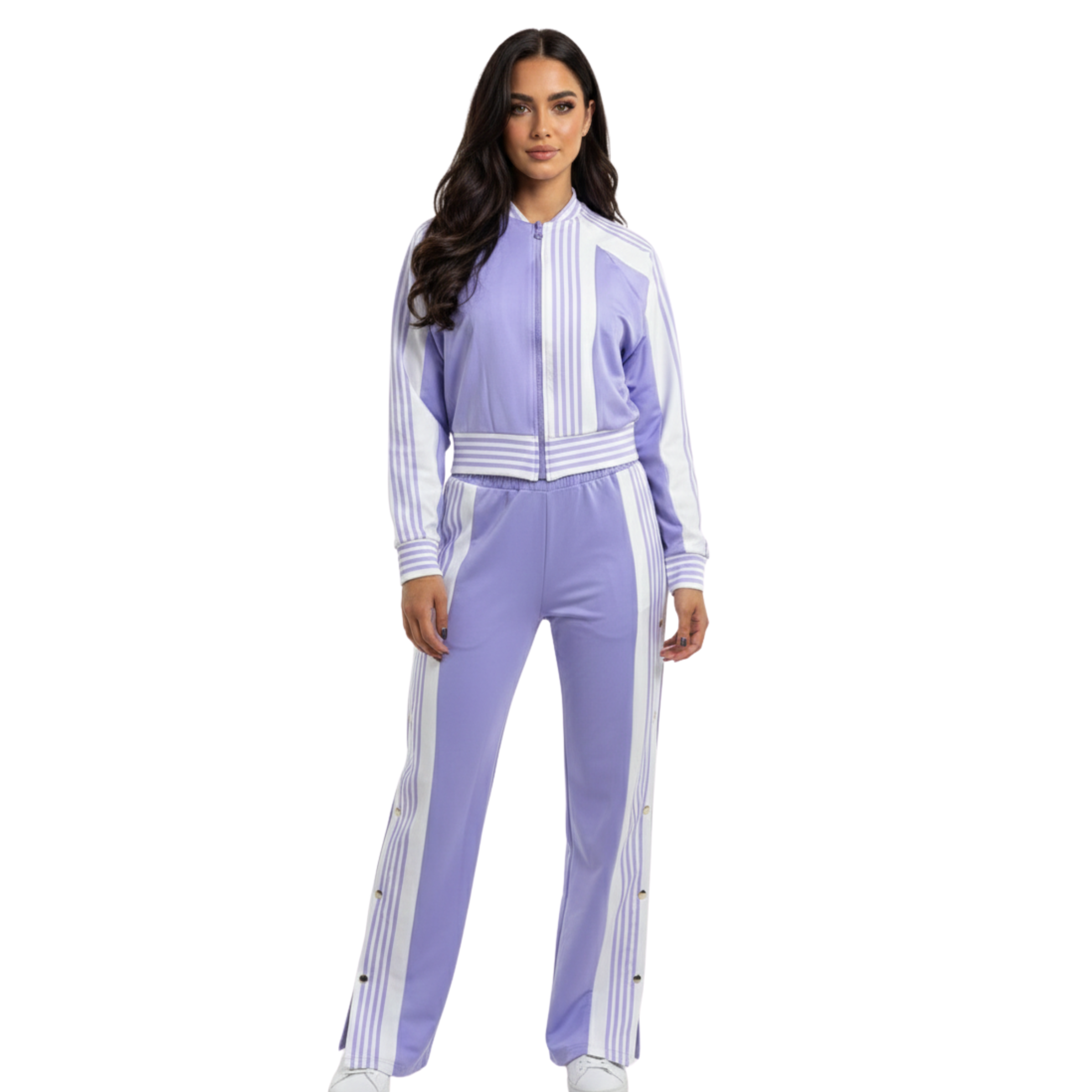 Set de chaqueta con cierre y cortes con sublimado de líneas.