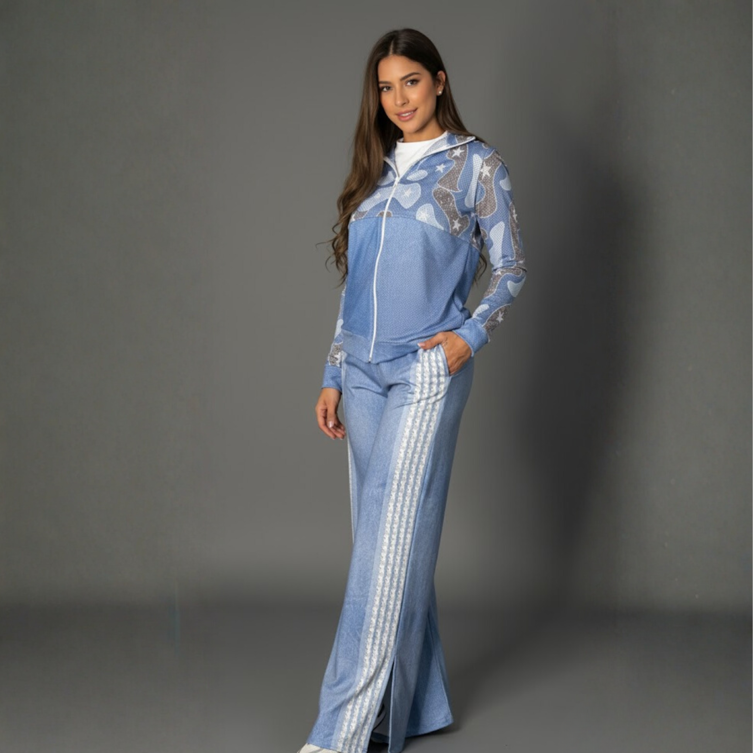 SET VIAJERO EN MEZCLILLA CON ESTAMPADO