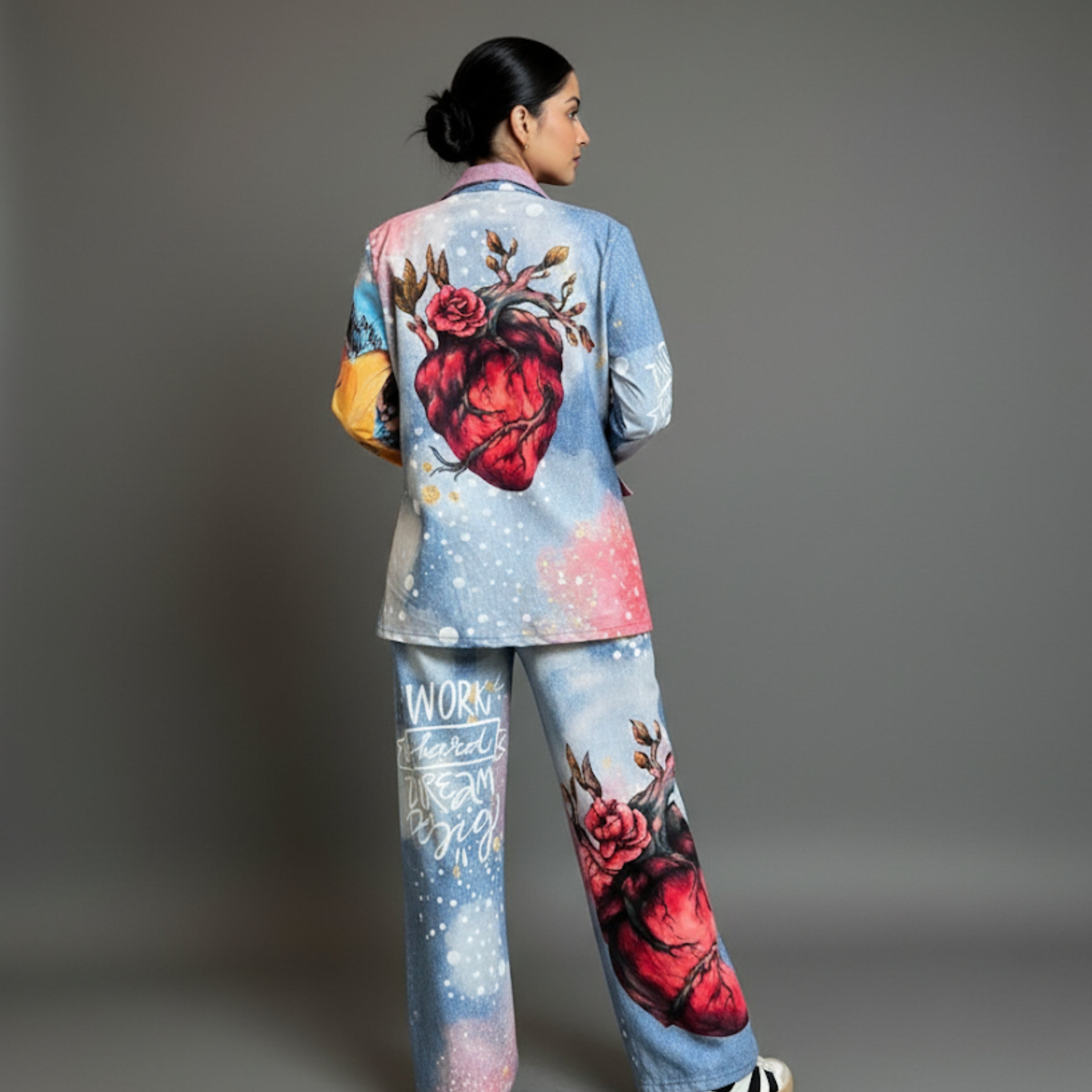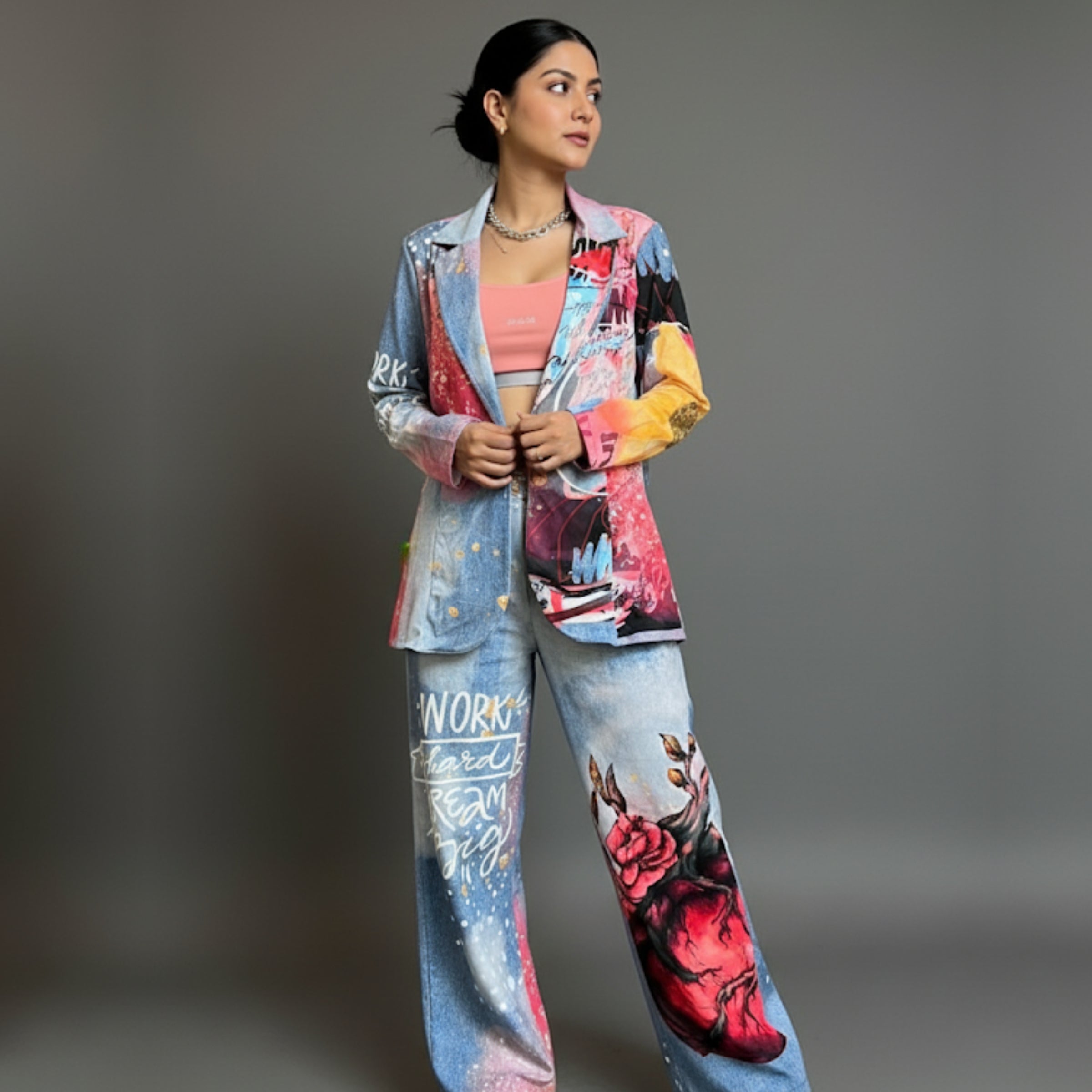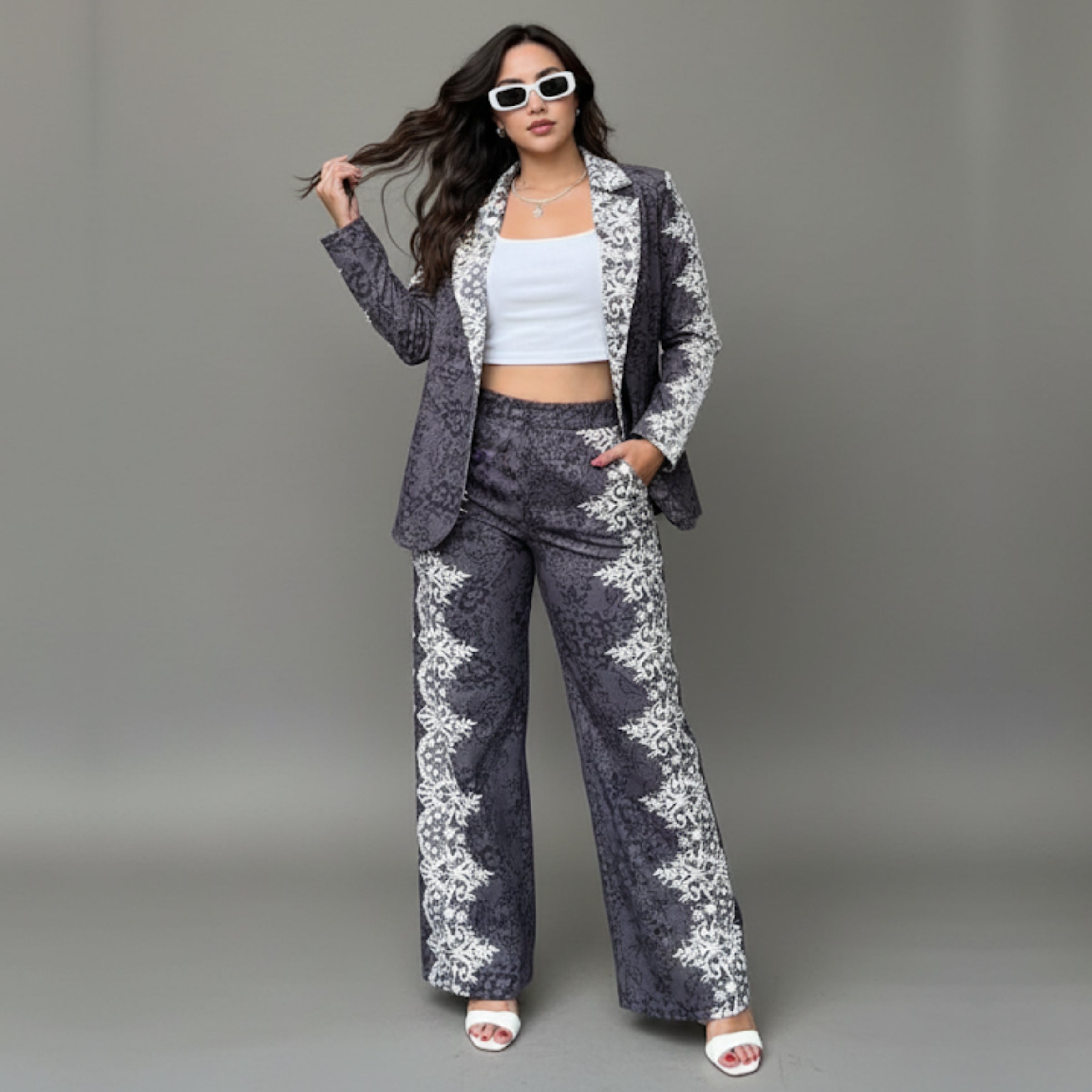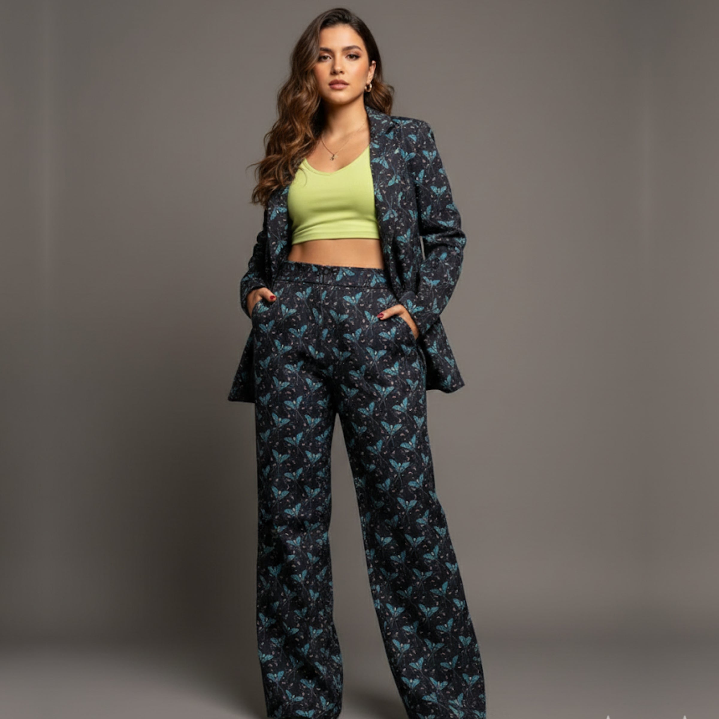 Conjunto estampado en blazer y pantalón talla SM y ML