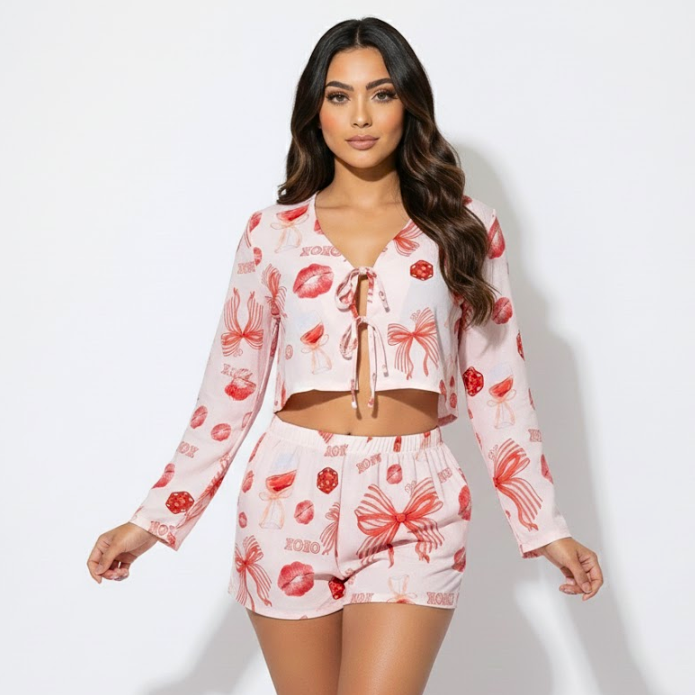 Pijama de dos piezas compuesta por Crotop manga larga y short corto con pretina recogida Diseñada en tela fresca, cómoda y liviana que brinda suavidad y libertad de movimiento, ideal para acompañar tus noches de descanso.