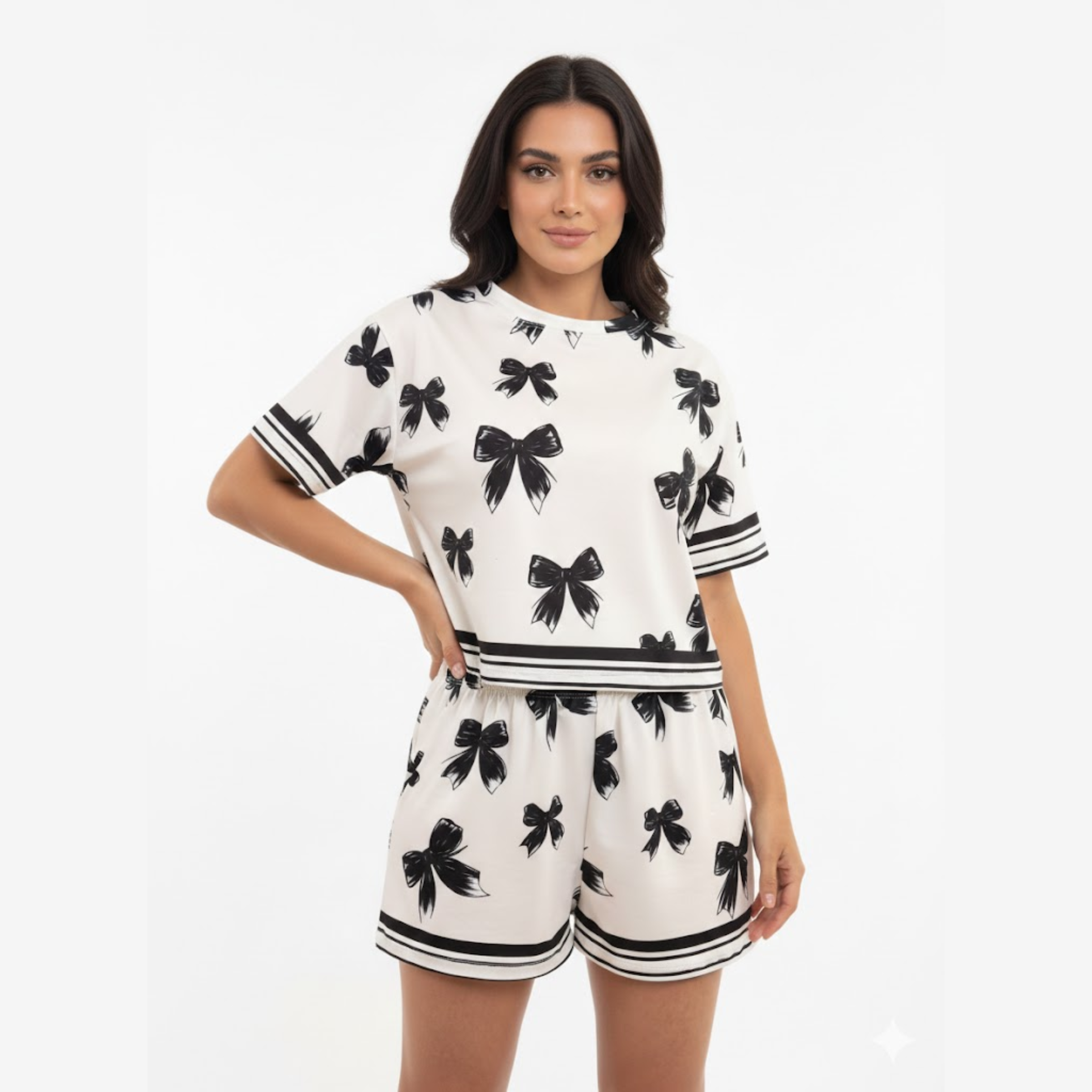 Pijama de dos piezas compuesta por blusa corta sublimada y short con pretina recogida. Diseñada en tela fresca, cómoda y liviana que brinda suavidad y libertad de movimiento, ideal para acompañar tus noches de descanso.