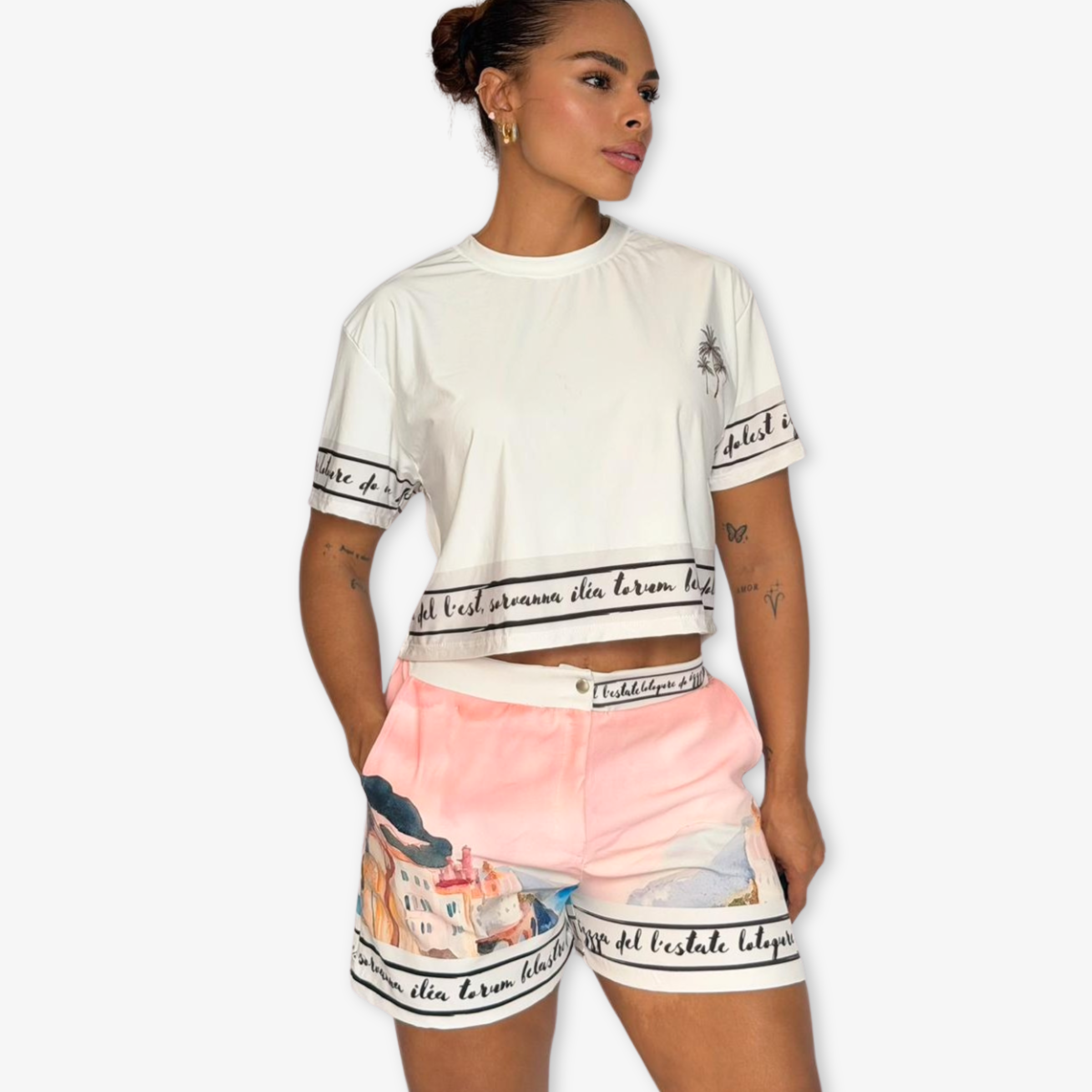 SET DE CAMISA CORTA ELBORADA EN LICRA Y SHORT EN TELA NOCHES DE VIENA