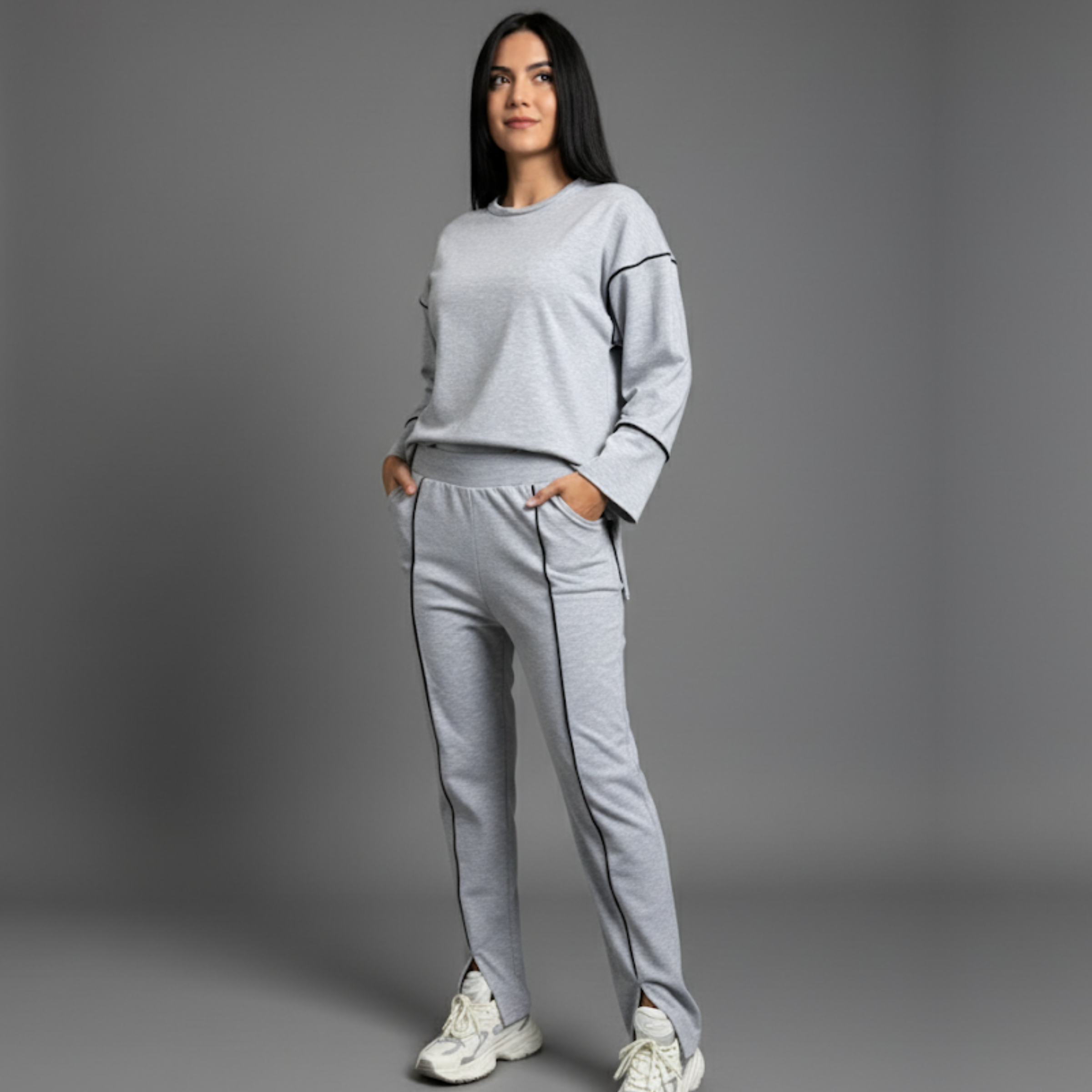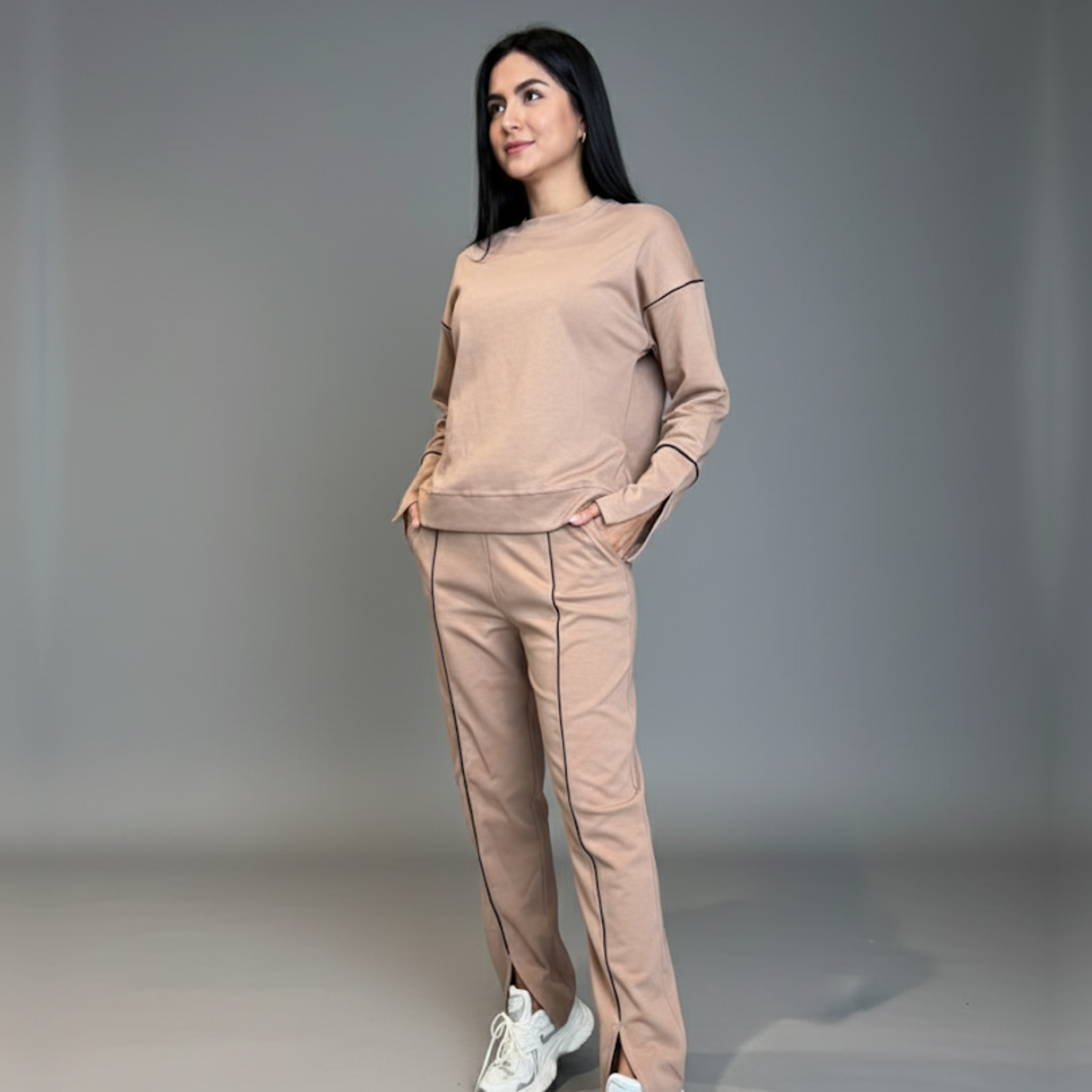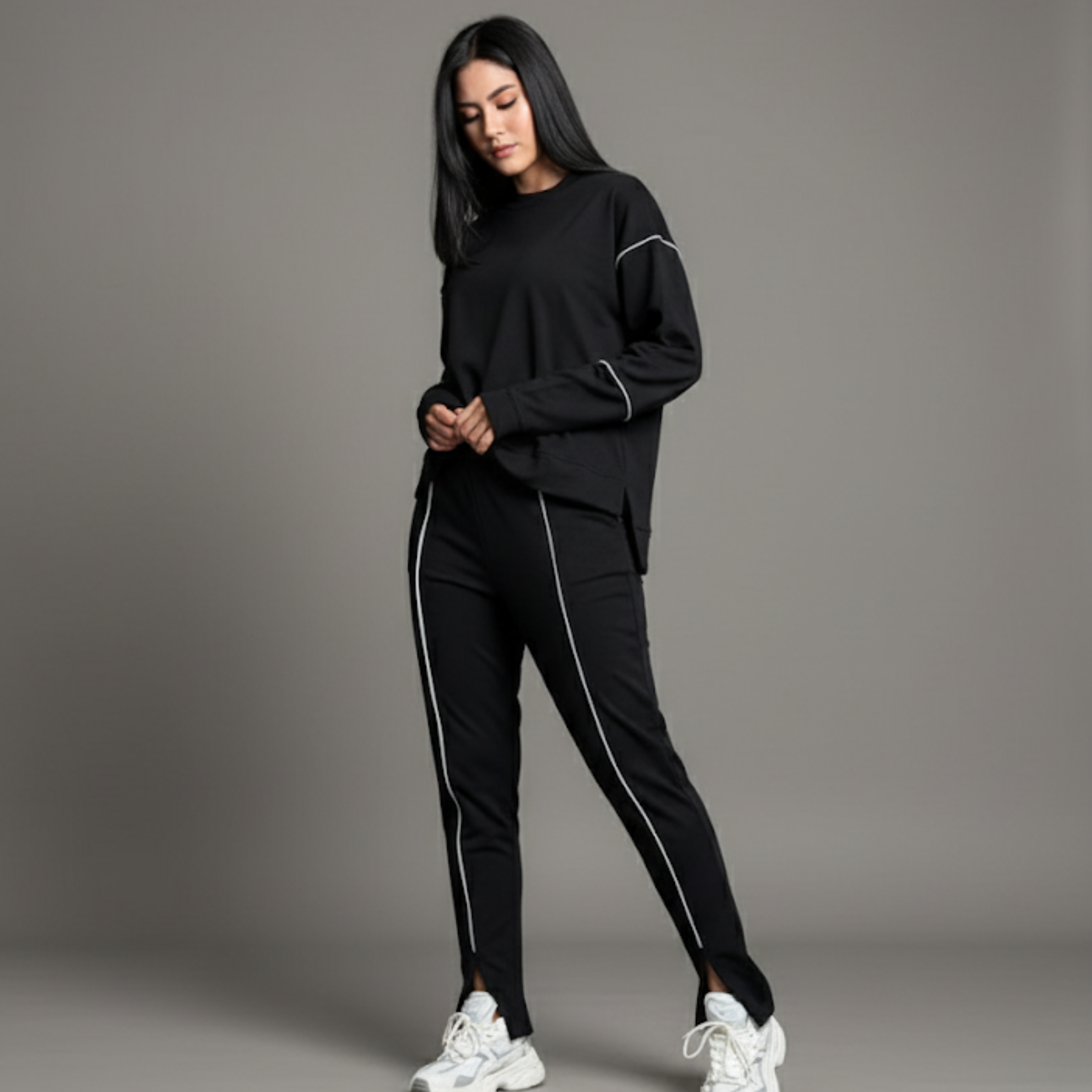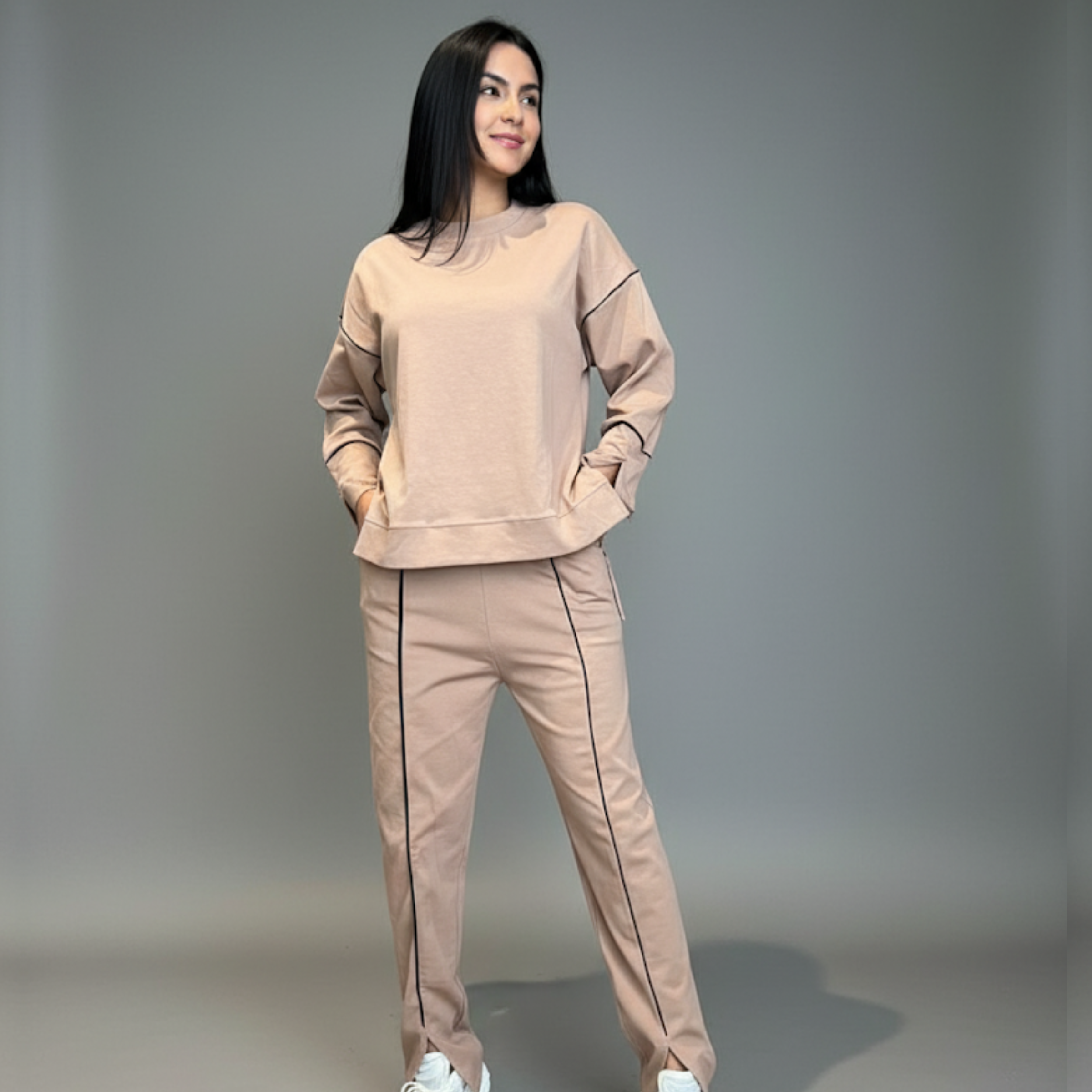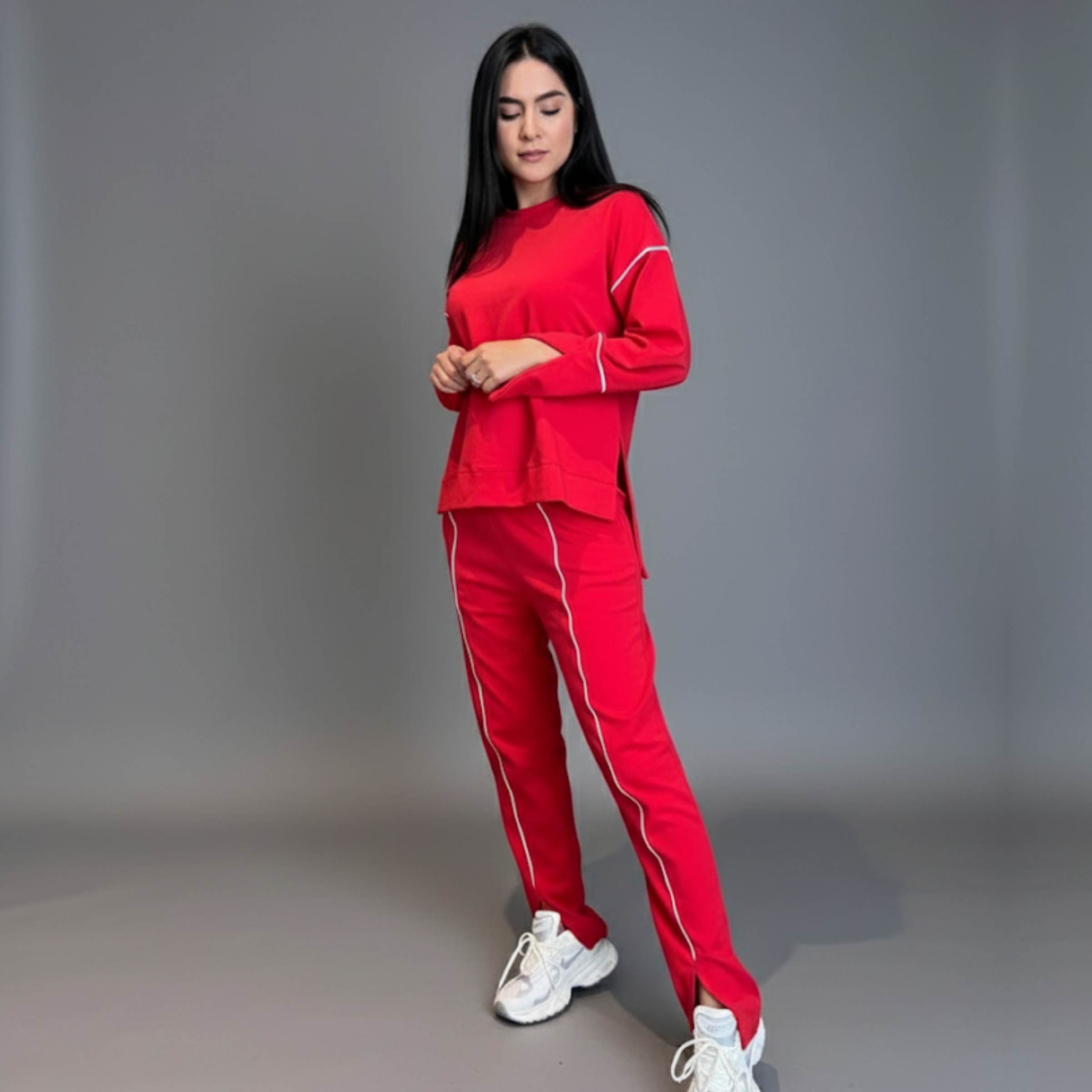 SET DE BUSO Y JOGGUER CON VIVOS, CON AVERTURA EN BOTA Y PUÑOS