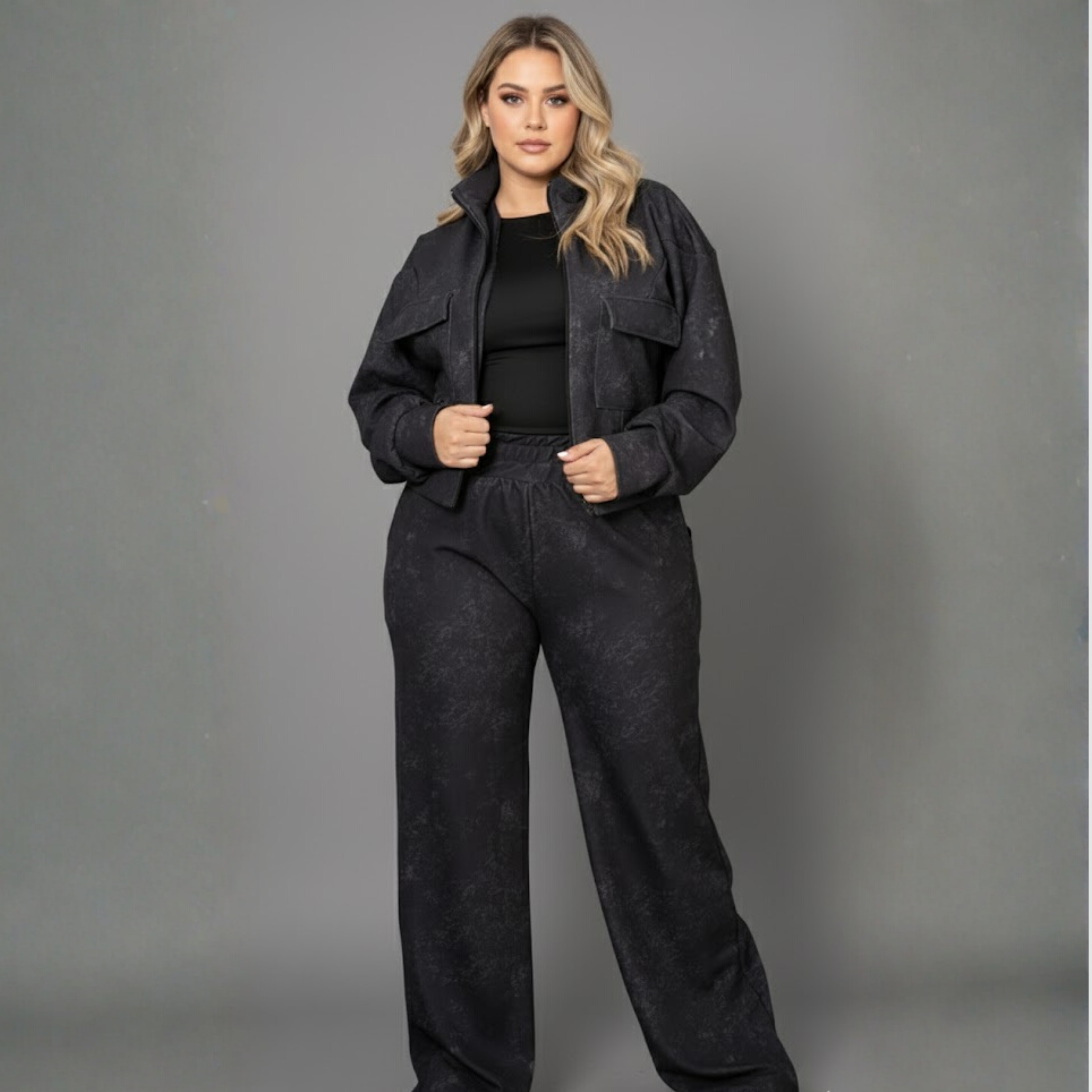 SET DE CHAQUETA CON BOLSILLOS DELANTEROS Y PANTALÓN.