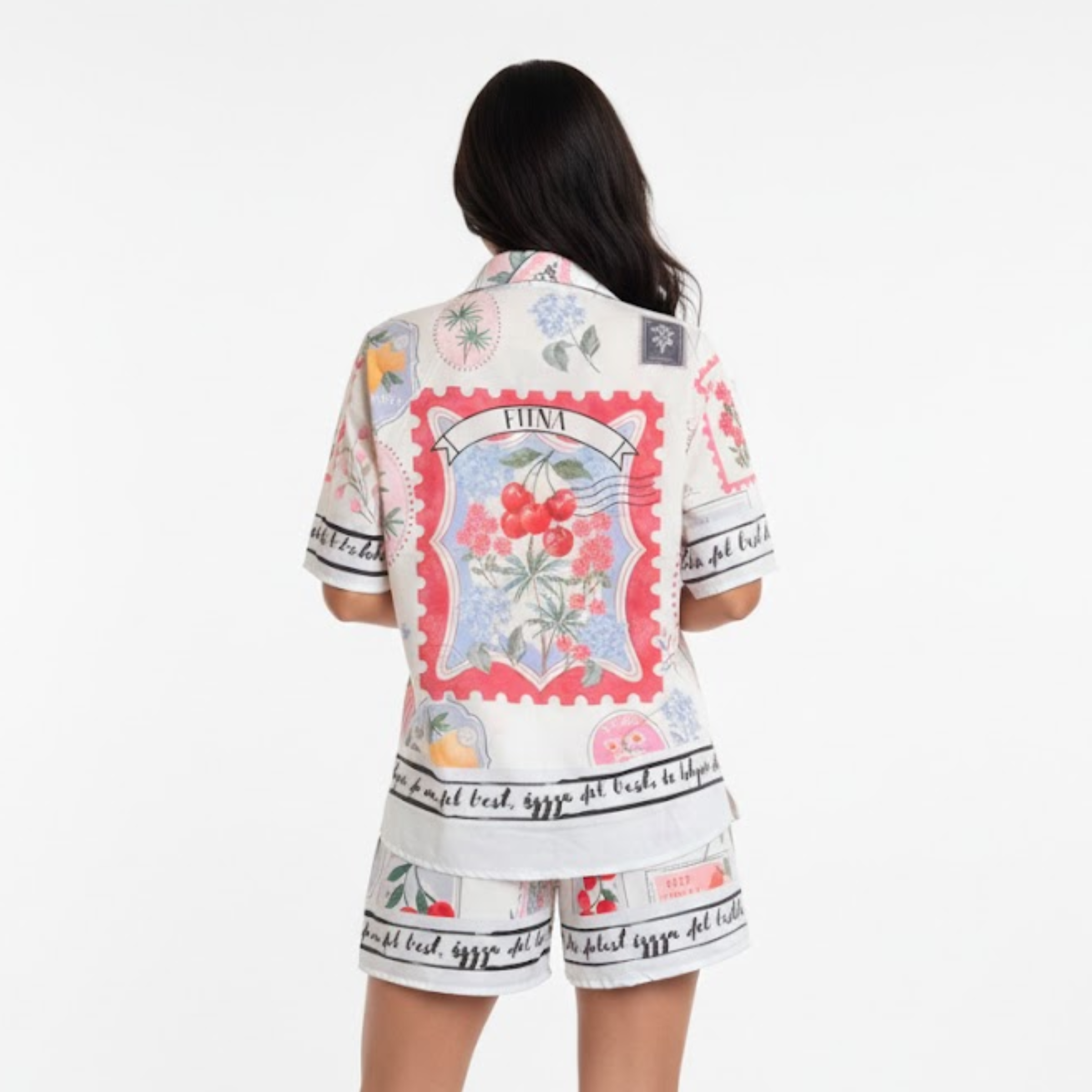 Set de camisón y short sublimado con estampación localizada, elaborado en tejido plano fresco y liviano.