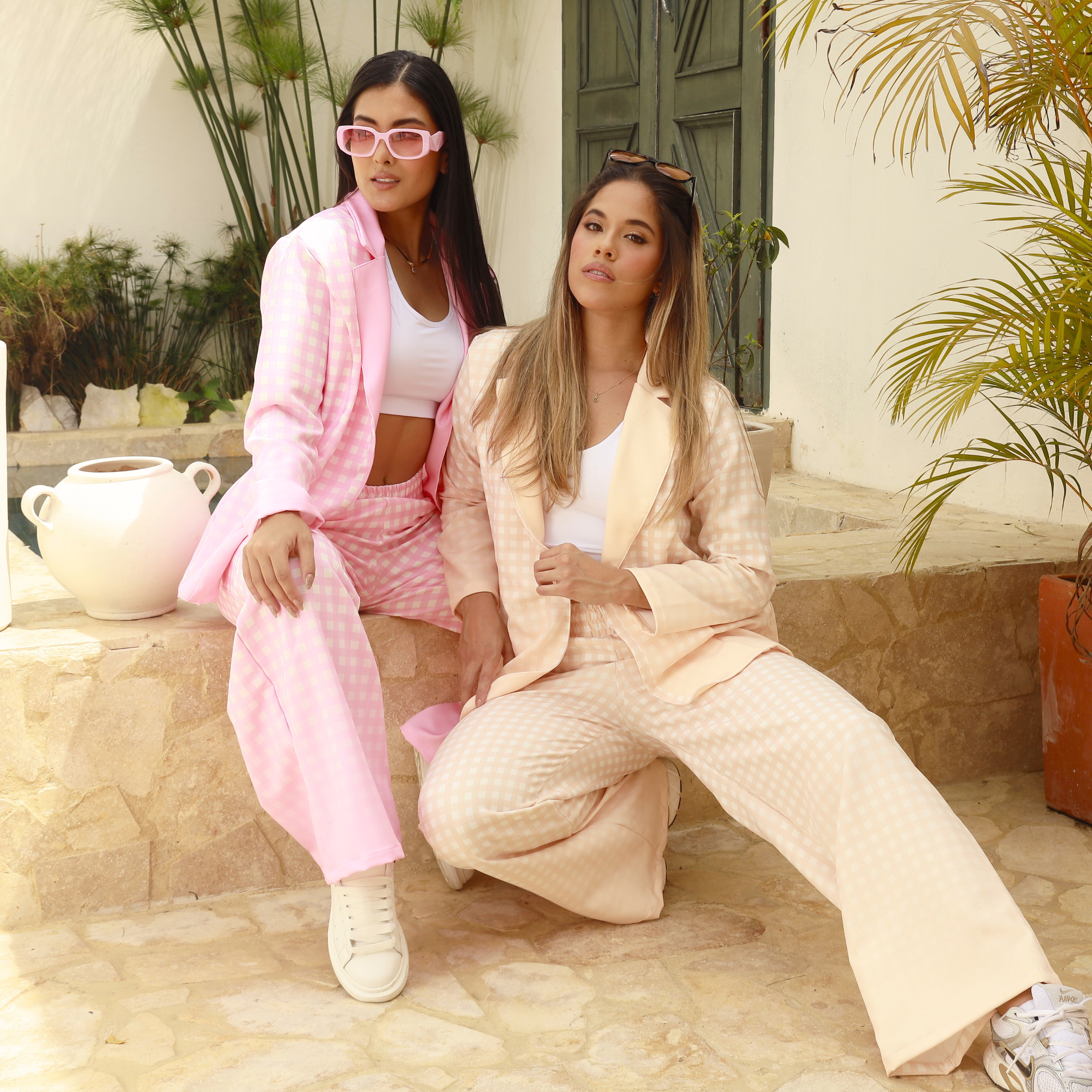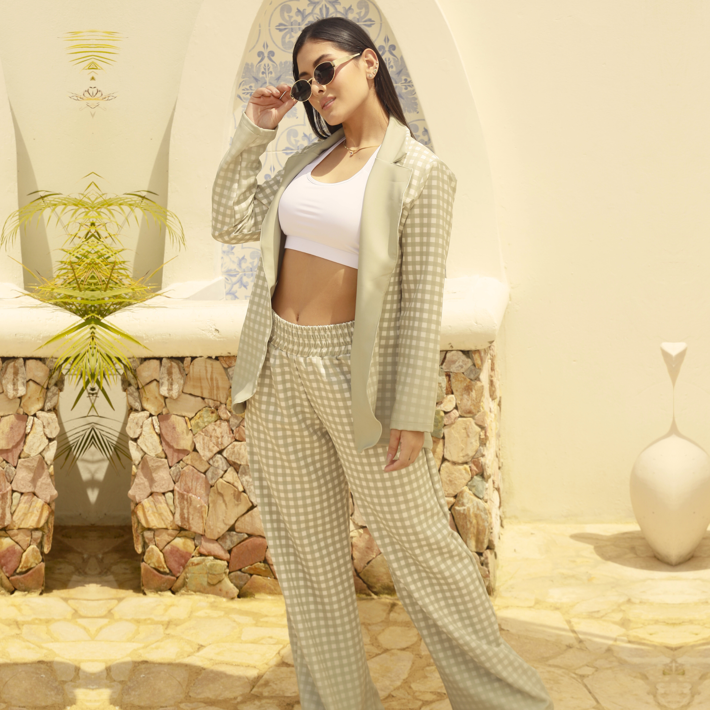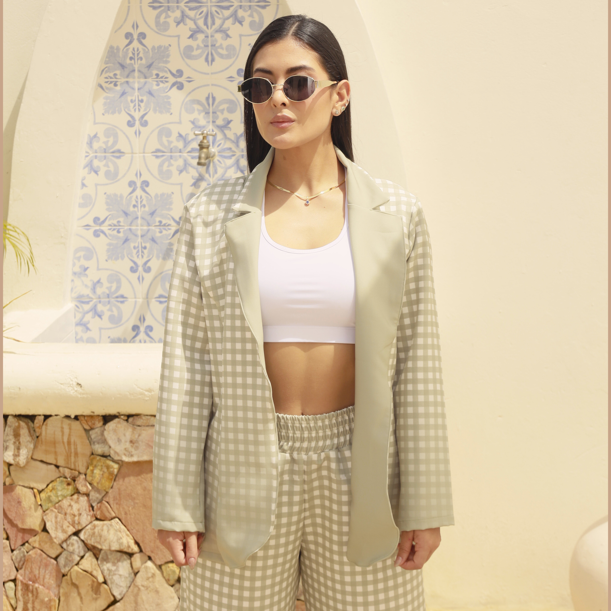 Set de blazer y pantalón sublimado con cuadros y difuminado