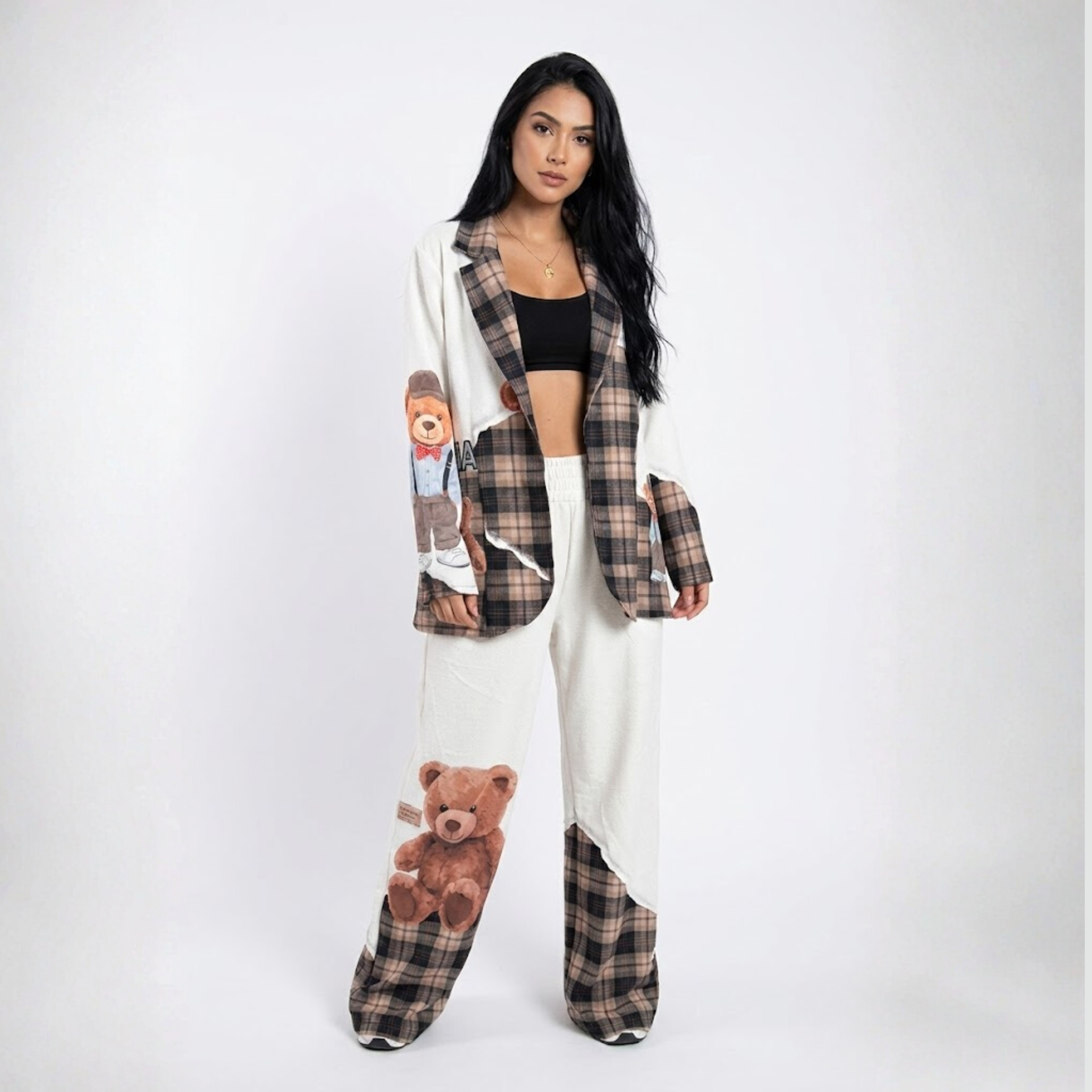 Conjunto de blazer y pantalón sublimado. PRETINA RECOJIDA