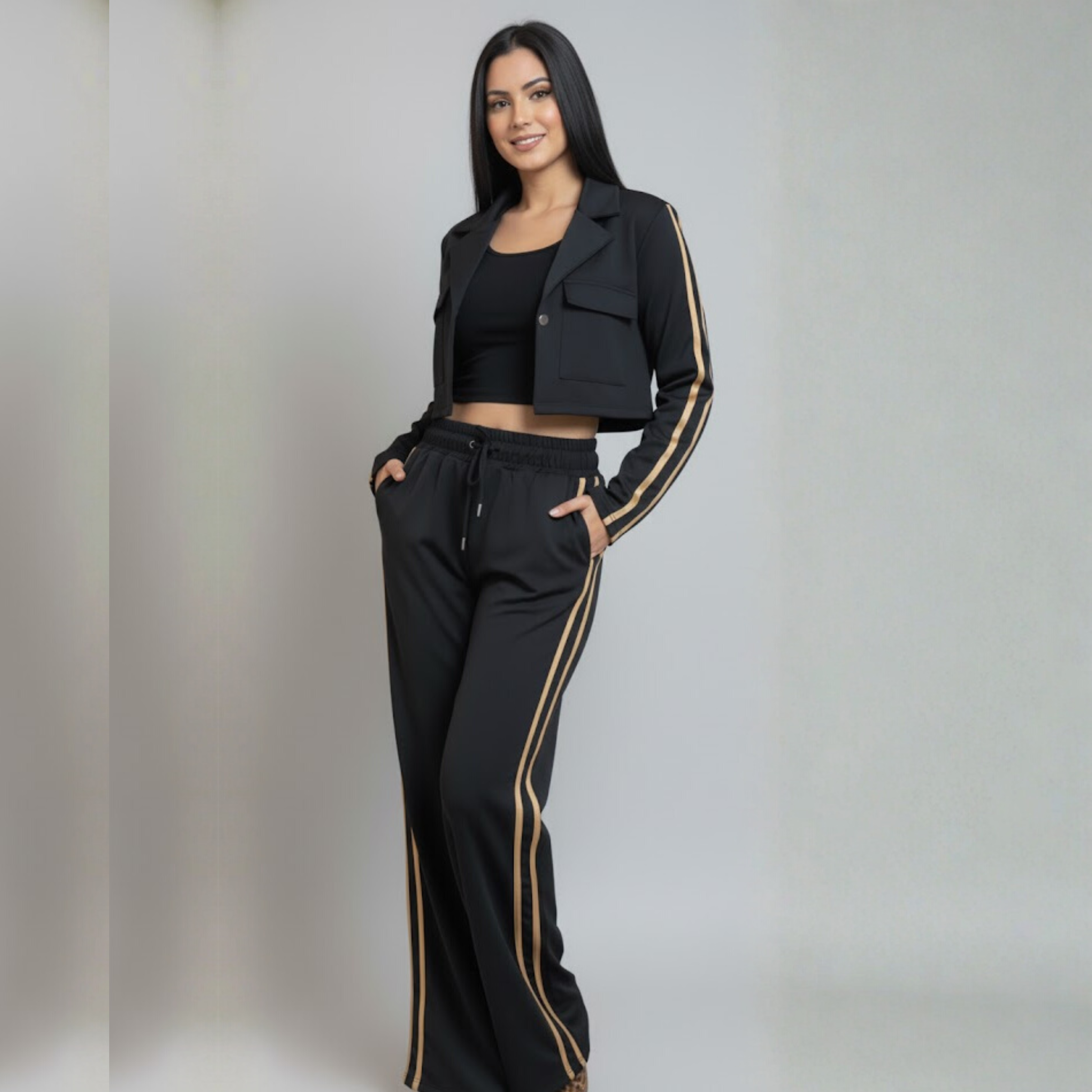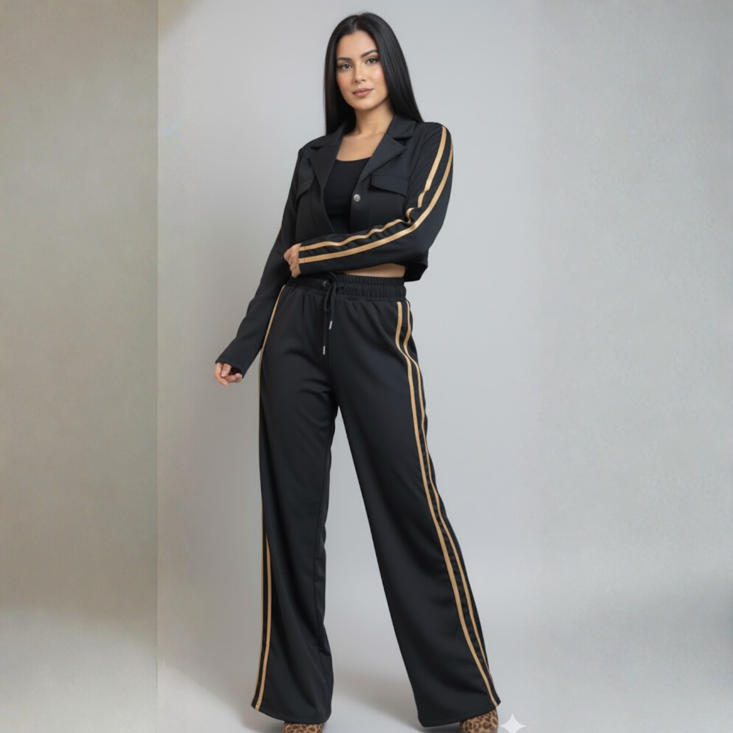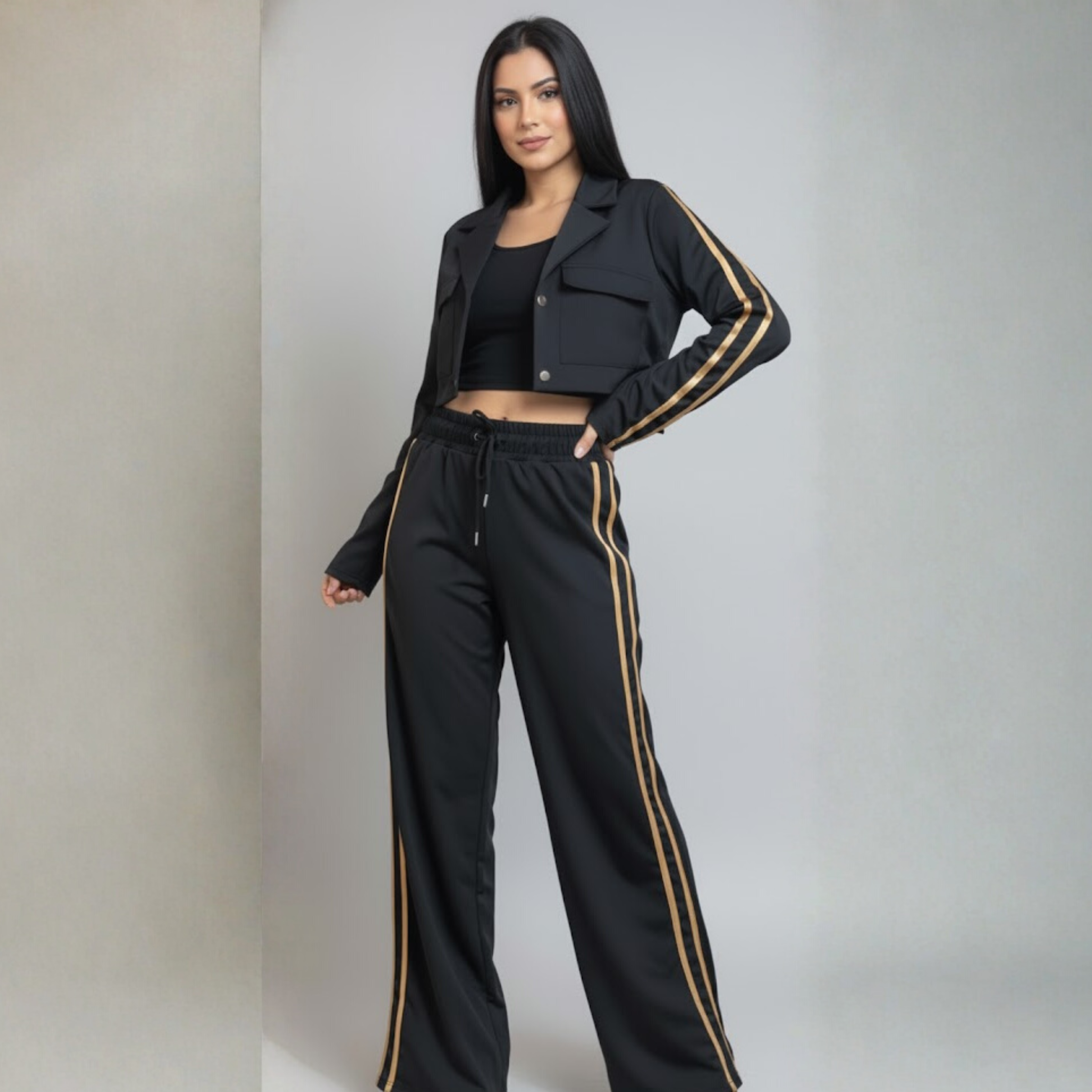 Set de chaqueta corta con broches y bolsillos delanteros.