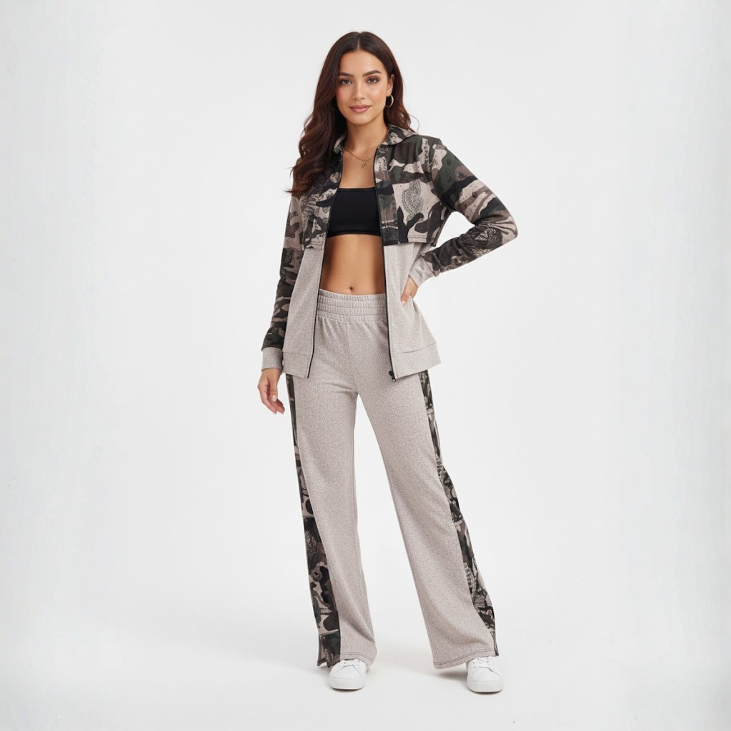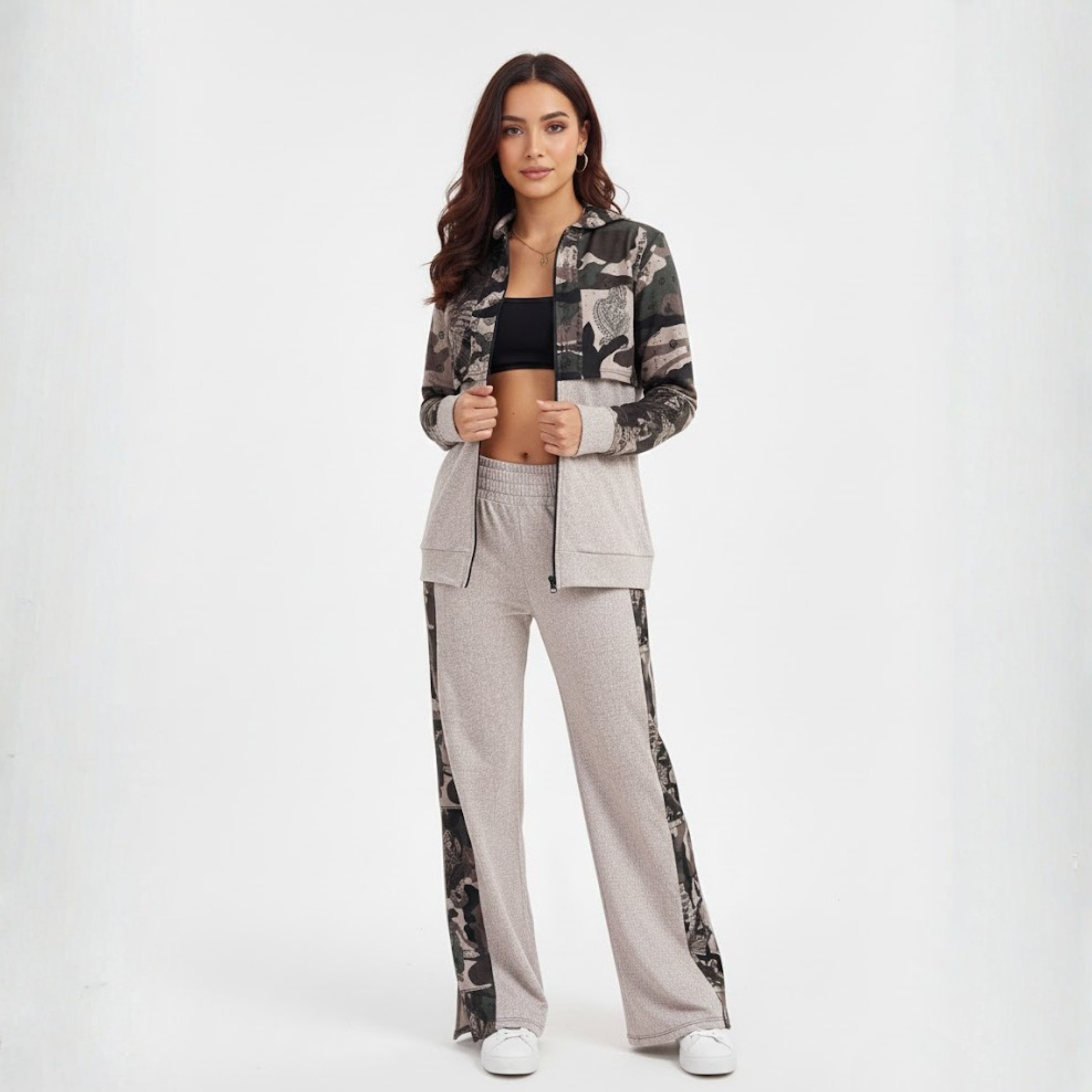 SET DE CHAQUETA DOBLE CAPA CON CAPUCHA Y PANTALÓN CON PRETINA PREPARADA