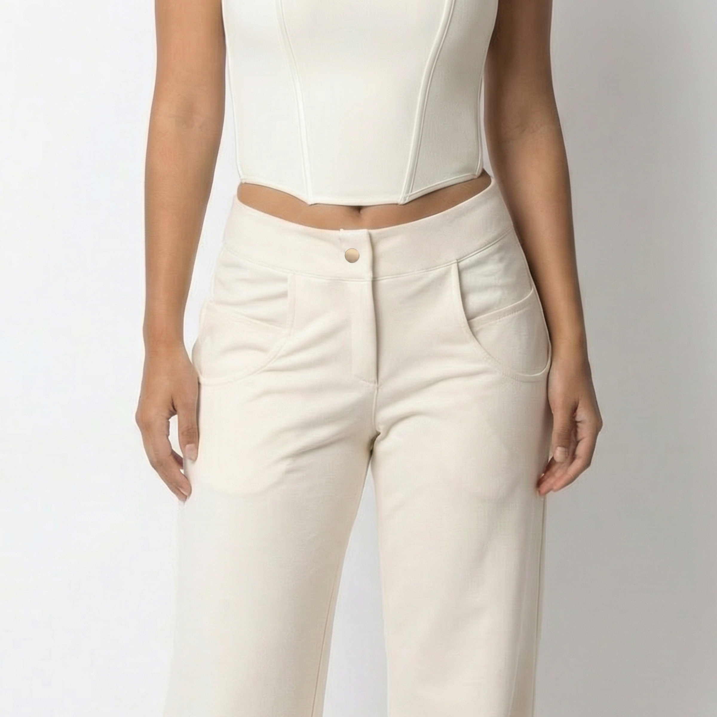 Set de corpiño con Barillas y pantalón con bolsillos delanteros y posterior, hecho en tela de tejido de punto con elongación